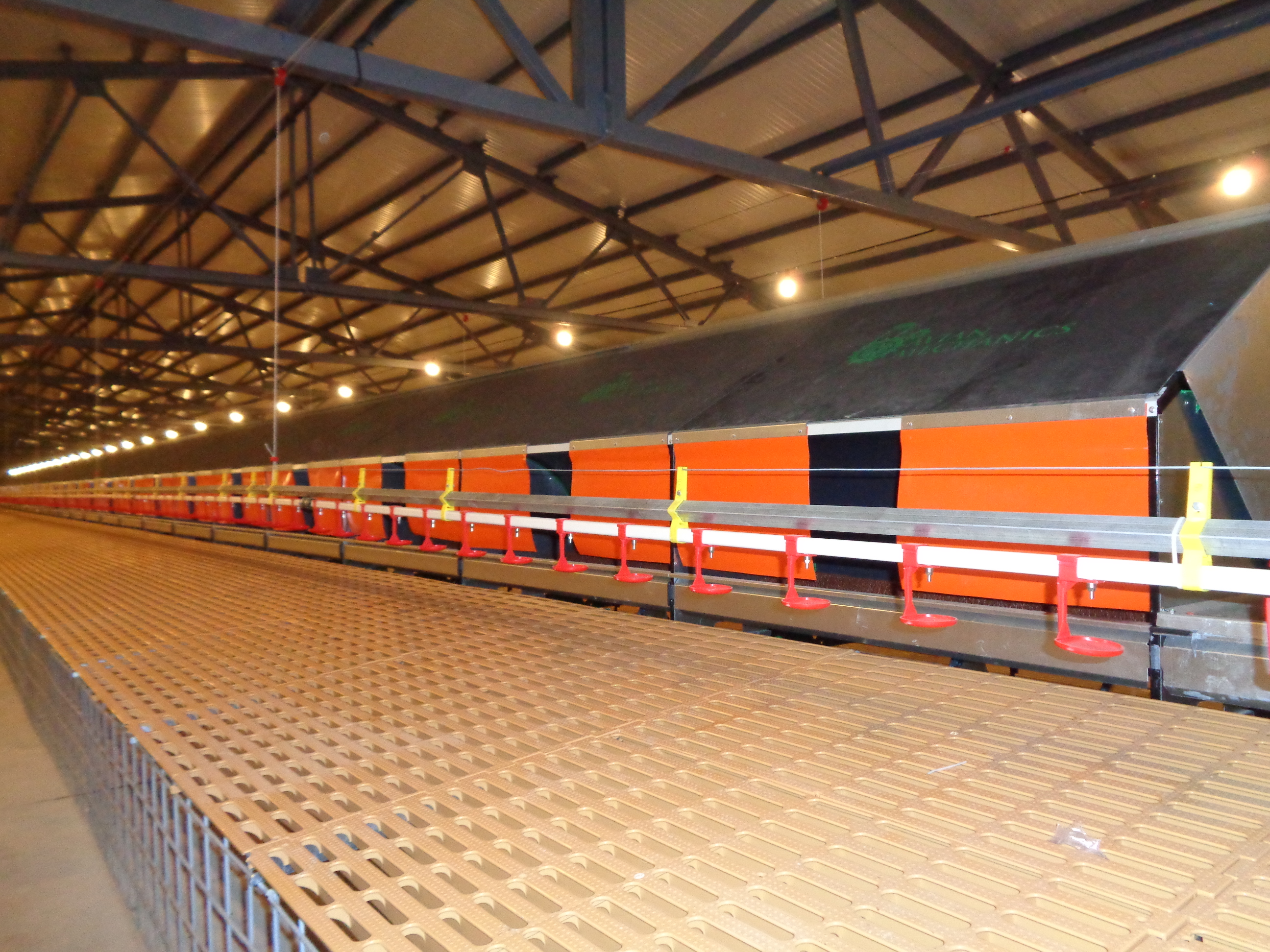 Bu Sistemin Temel Avantajları:Otomatik Folluk Avian Mechanics, Otomatik Folluk Sistemi, hayvanlar için maksimum refahı hedefler. Bu sisteme dahil olan tüm unsurlar, yemlik, suluk, yumurta toplama sistemleri vb. hayvanların ergonomisi, refahı ve maksimum verimlilik hedeflenerek tasarlanmıştır. İyi düşünülmüş bu yüksek konfor alanı sayesinde ise yumurtlama döneminden en yüksek verim alınmaktadır. Avian Mechanics, Otomatik Folluk Sistemi, yapımında kullanılan dayanıklı ve sağlam malzemeler sayesinde uzun ömürlüdür ayrıca bakım gereksinimi minimum seviyededir. Folluk temizliği hızlı ve basit bir şekilde yapılabilmektedir. Kuşların yuvaya kolayca girip çıkabilmeleri, yumurtaların hasar almadan toplanması, maksimum hijyen sağlanması gibi faktörler oldukça önemlidir. Folluk içerisinde, yumurtaların kırılmasını önleyen, tavukların ayak fizyolojilerini koruyan ve folluğun içerisine herhangi bir zararlının girmesini engelleyen özel tasarımlı paspaslar kullanılmaktadır. Hareket edebilen folluk tabanı sayesinde tavuk yumurtlama süresince kendini doğal ortamında ve güvende hisseder, yumurtlama bittiğinde ise folluktan temiz ve hijyenik bir şekilde tahliyesi sağlanır. Follukta kullanılan plastik altlıklar kolayca temizlenebilmektedir bu şekilde optimum hijyen sağlanmıştır. Yine bu plastik altlıklar sayesinde hasarlı yumurta oranları minimum düzeyde tutulmaktadır. Su Sistemleri Avian Mechanics, su sistemlerinde paslanmaz çelik nipeller kullanılmaktadır. Her nipelin altında ise hayvanların su içmesini engellemeden suyun sıçramasını önleyen damlalıklar bulunur. Suluk hatları folluğun tam önünde yer almaktadır böylece kuşlar zorlanmadan taze ve temiz suya ulaşabilirler. Su hattının boyu programlanabilmektedir böylece kuşlar için kullanılabilir alan arttırılır. Eğer su hattı askıya alınmışsa üzerine tüneme önleyici tel yerleştirilir. AviFit 330 Yem Sistemleri Avian Mechanics, Well Being Yer Sistemlerinde AviFit 330 yemlikler kullanılmaktadır. Bu yemlikler canlıların tüm ihtiyaçları göz önünde bulundurularak tasarlanmıştır. AviFit 330 yem haznesi 360 ° dönebilmektedir, ayrıca ayarlanabilir yem seviyesi sayesinde kuşlar büyüdükçe yemlikler kaldırılır ve yem seviyesi düşürülür böylece yem sarfiyatı önlenmiş olmaktadır. AviFit 330 üzerinde bulunan 14 adet penceresi sayesinde ilk günlük civcivler bile kolayca yeme ulaşabilir. Ayrıca bu ayarlama ekstra iş gücü gerektirmemektedir. AviFit 330 Yem Sistemi boyunun programlanabilir olması sayesinde, yem saati dışında bu sistemler kaldırılabilir böylece kullanılabilir alan kazanılmış olur. Kuşlar taze ve temiz yeme kolayca ulaşabilirler, böylece her kuş eşit şekilde beslenir ve birbiriyle eşit gelişmiş kuşlar elde edilir. AviFit 330 tasarımında V şeklinde taban altlığın altına yerleştirilmiştir böylece ilk günlük kuşlar için bile uygun bir sistemdir. AviFit 330 Yem Sisteminin, kurulumu oldukça kolaydır, iyi düşünülmüş tasarımı ve kaliteli malzemeden üretilmiş olduğu için bakım gereksinimi minimum düzeydedir. Oldukça kullanım dostu olan bu sistemin çalışma ömrü uzundur. Tünek Sistemi Avian Mechanics, tünek tasarımını yeniden düzenleyip, yumuşak PVC kaplı yüzeye sahip tünek borusu olarak dizayn etmiştir Bu yeni tasarım tünek borusu Well Being Yer Sistemine isteğe bağlı olarak eklenebilmektedir. Bu tasarım sayesinde hayvanların fizyolojisinde meydana gelen bazı bozuklukların ve refah sorunlarının en aza indirilmesi hedeflenmiştir. Yine bu özel tasarım sayesinde tavukların tünemesi teşvik edilmiştir. Pop Hole Doors – Otomatik Kapılar Avian Mechanics, Pop Hole Doors Otomatik Kapılar soğuğu dışarıda, sıcağı ise içeride tutmaya yardımcı olan sistemlerdir. İsteğe bağlı olarak farklı boyutlarda üretilebilir, böylece çiftçilerin farklı ihtiyaçlarını karşılayabilirler. Avian Mechanics, otomatik kapılar üç katlı iç ve dış katmanlara sahiptir. Bu katmanlar hayvanlar için gerekli havalandırmaya sahiptir ve enerji tasarrufu için çift sızdırmazlık sistemiyle çalışır. Bu otomatik kapılar sağlamdır ve hava akımı geçirmez, 25 veya 35 mm kalınlığında poliüretan panelden yapılmıştır ve bu nedenle maksimum yalıtım sağlamaktadır. Avian Mechanics, Otomatik Kapıların üretiminde, 15 mm plywood ile birlikte 10 – 20 mm EPDM köpük kullanılmıştır. |