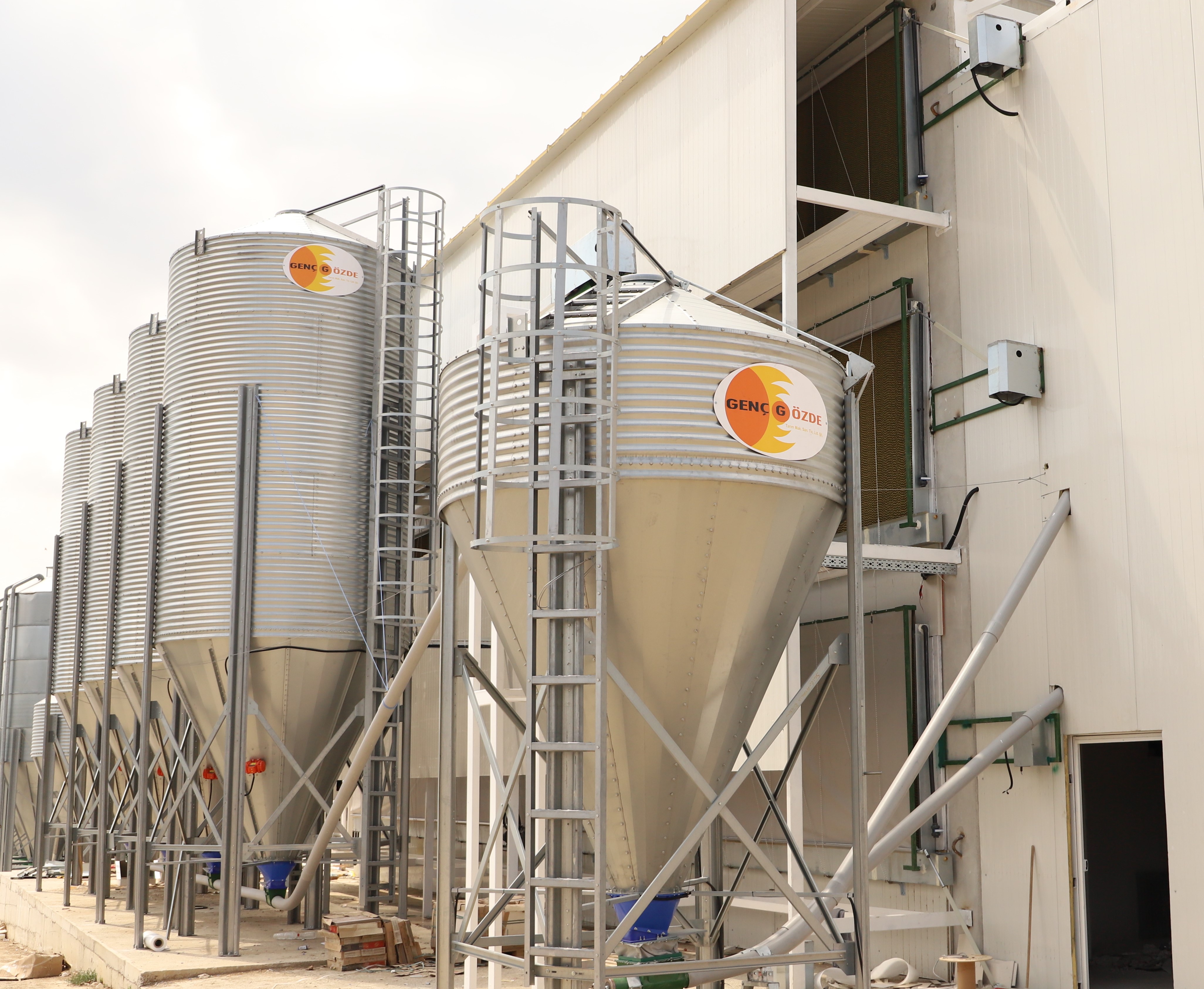 Yem magnelis kaplı sağlam yem silolarında depolanabilmektedir. Magnelis en zorlu koşullara dahi dayanıklı, yenilikçi bir kaplama türüdür. Standart galvaniz silolara göre 10 kat daha yüksek koruma seviyesine sahiptir. Bu sayede hava koşullarına dayanıklıdırlar ve yem dış koşullardan etkilenmeden taze ve temiz olarak saklanabilmektedir. Yem taşıma sistemleri sayesinde ise yem, tüm kuşlara eşit olarak dağıtılır ve bu sayede birbirleriyle eşit gelişmiş kuşlar elde edilir. Silo tasarımındaki özel eğim oranı ve konik taban sayesinde tıkanma sorunu olmadan aktarılır. Silolar ve yem taşıma sistemleri sayesinde yem, el değmeden kuşlara ulaştırılmaktadır böylece oldukça hijyenik olmakla birlikte oluşabilecek potansiyel hastalıklar da önlenmiştir. Çiftçilerin ihtiyaçlarına göre farklı boyutlarda tasarlanabilmektedirler. |